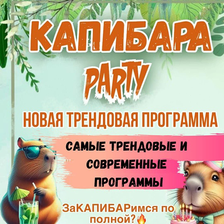 Закажите Капибара-Пати в нашем праздничном агентстве. За несколько лет нашей работы мы написали тысячи интереснейших сценариев, которые порадуют и Ваших детей и Вас.
